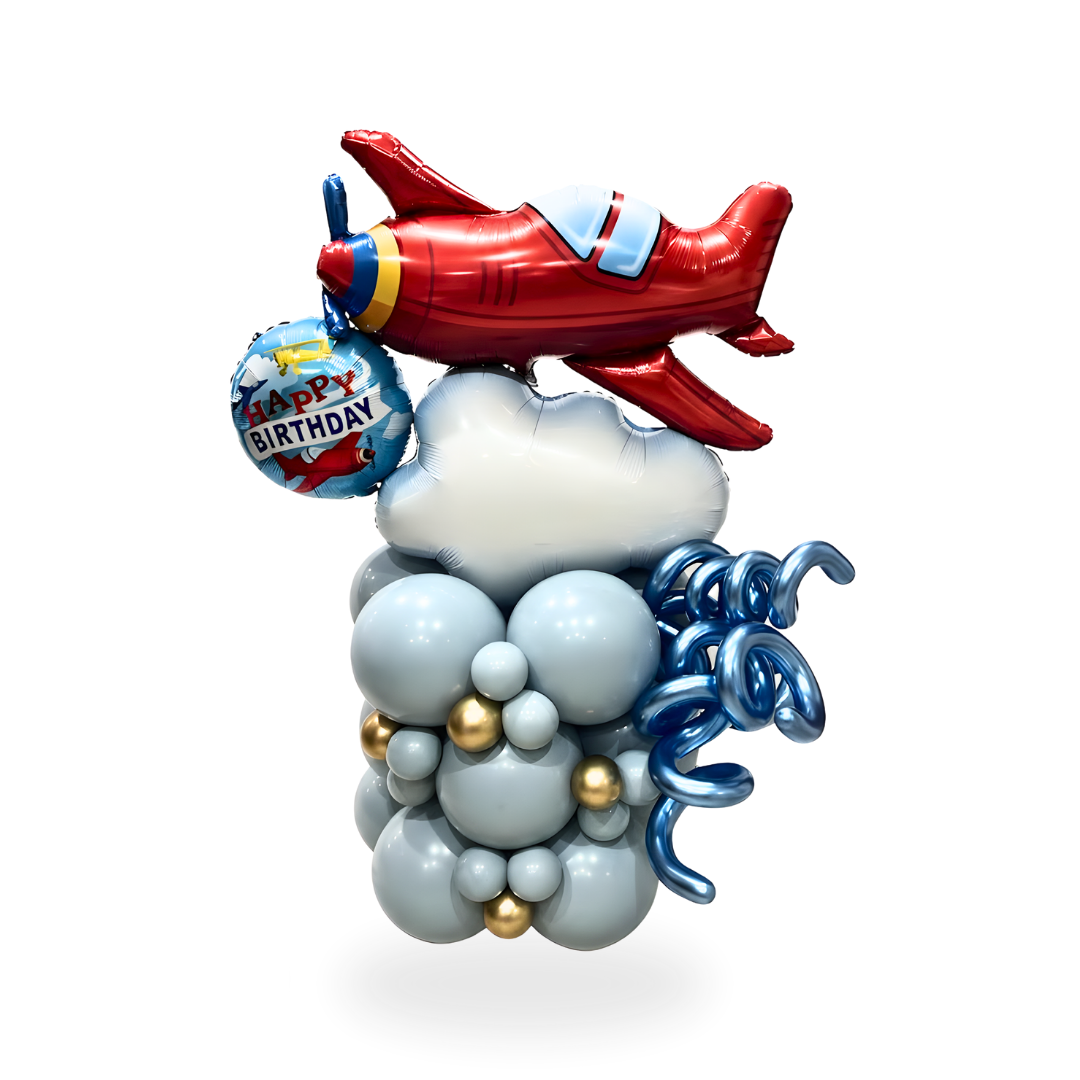 Introducing the "Flying High Airplane Balloon Arrangement" - Take your celebration to new heights with this enchanting and whimsical arrangement.