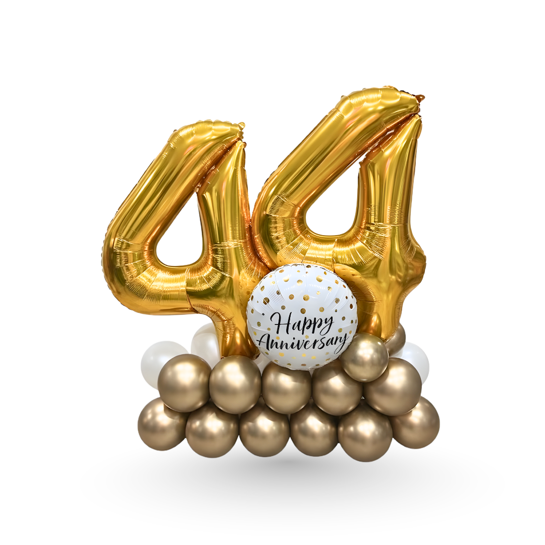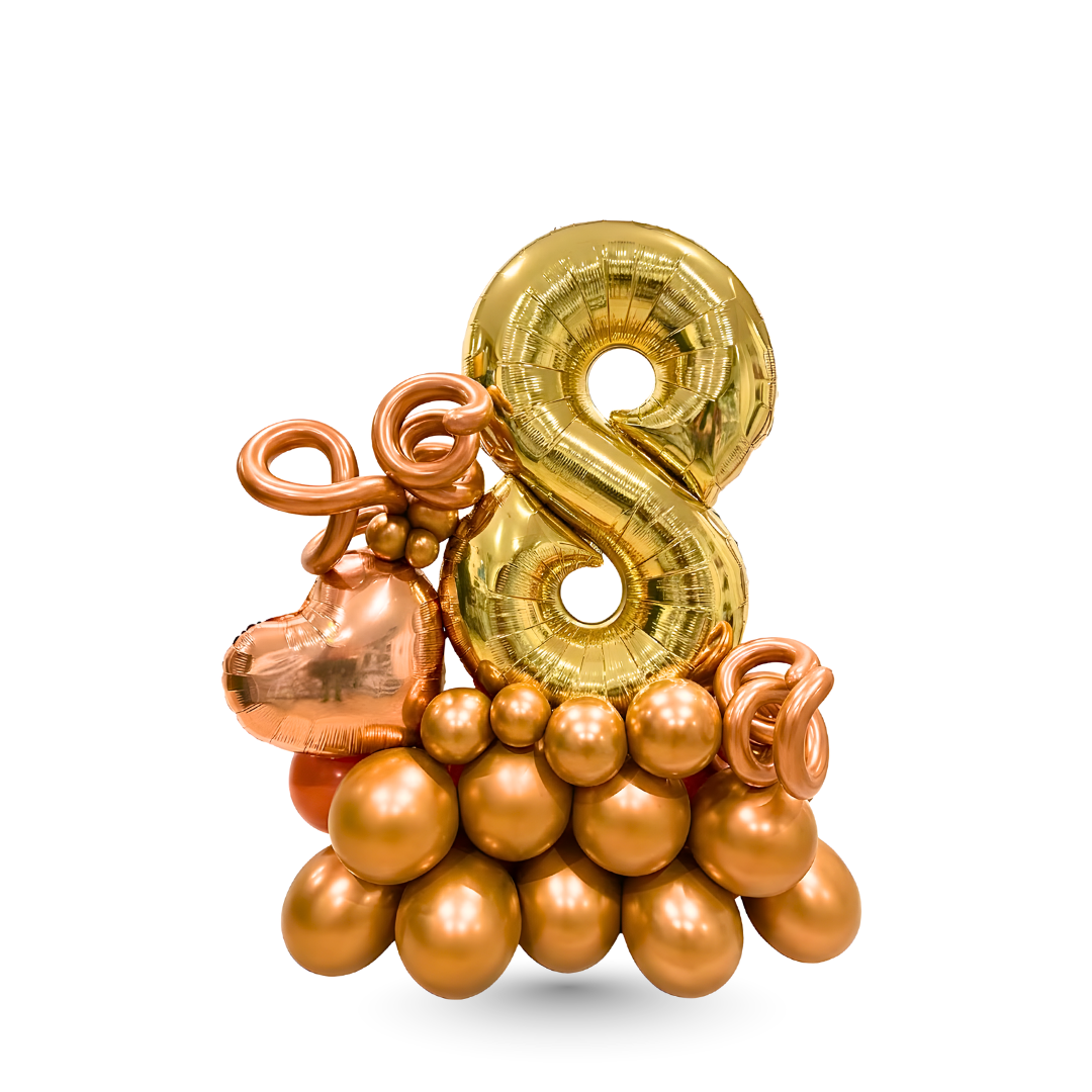 Our best-selling product, The Awesome Balloon Arrangement! This impressive bouquet includes double-digit balloons to represent the recipient's age, along with a "Happy Birthday" balloon that can be personalized with their name.